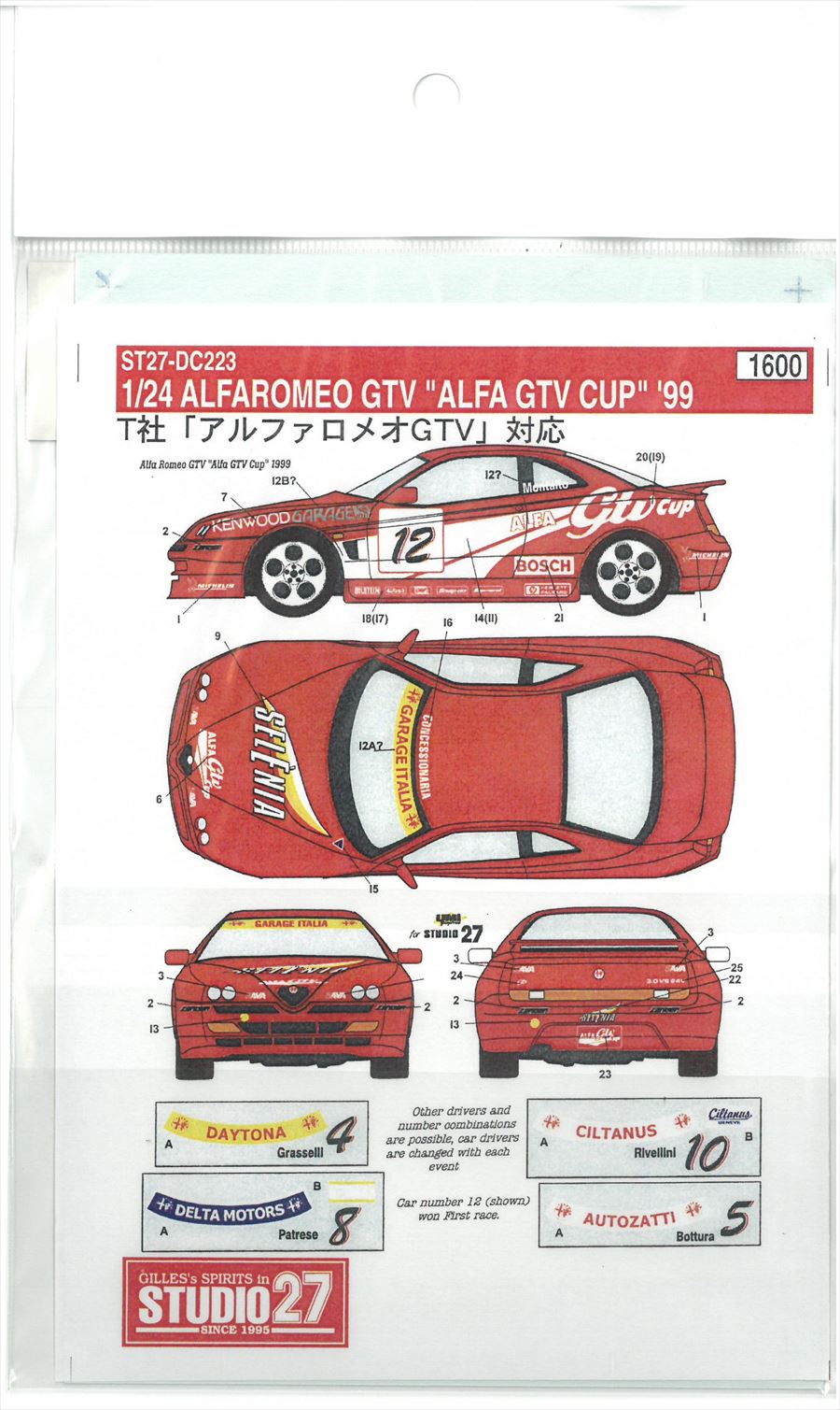 | 製品名 | DC223 1/24 Alfa Romeo "ALFA GTV CUP" 1999 |