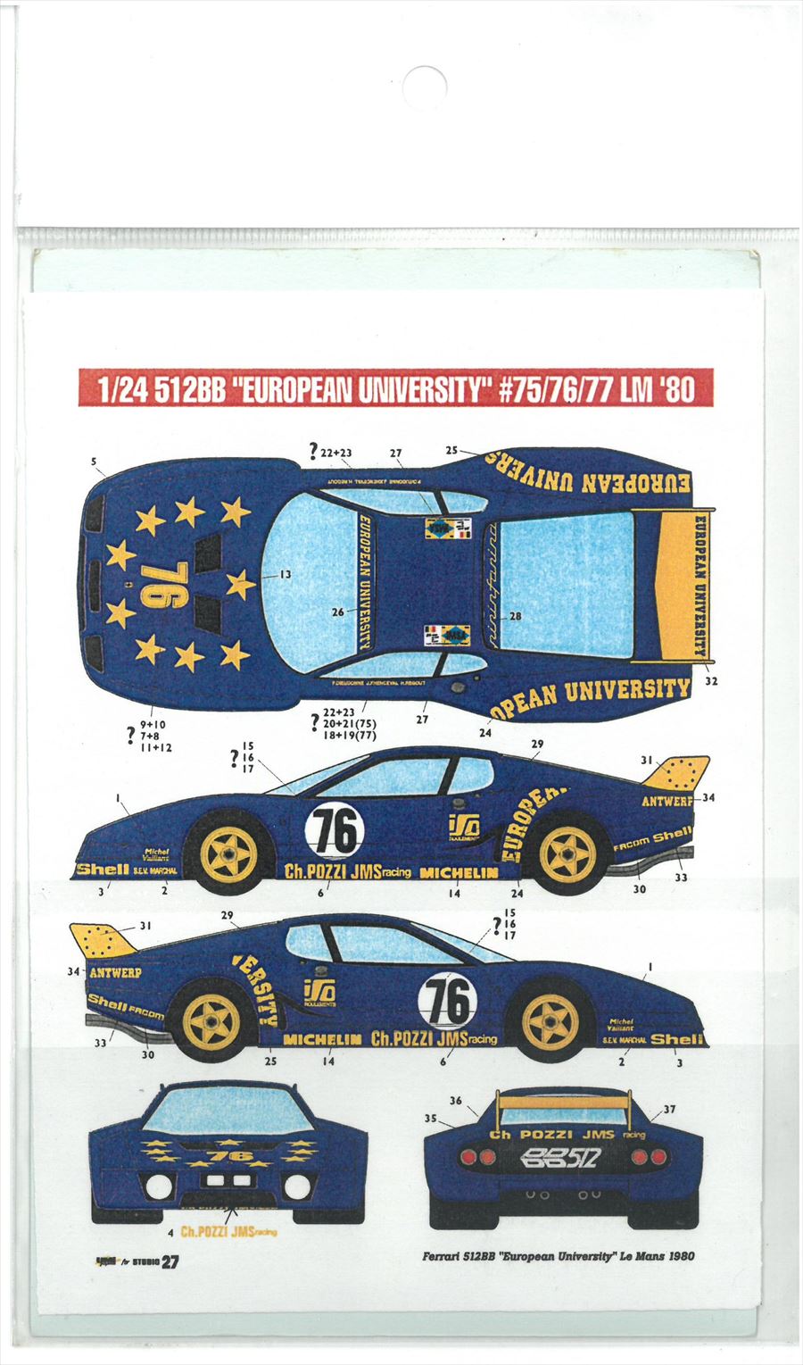 DC292 1/24 Ferrari 512BB "Europeen University" #75/76/77 LM 1980