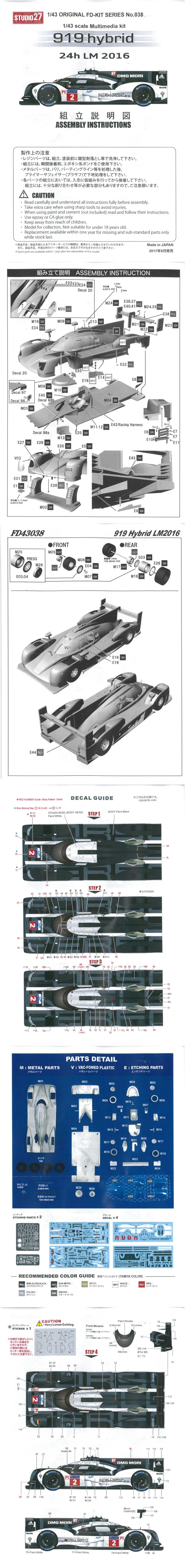 | 製品名 | FD43038 919 hybrid 24h LM 2016 1/43 scale Multimedia kit |