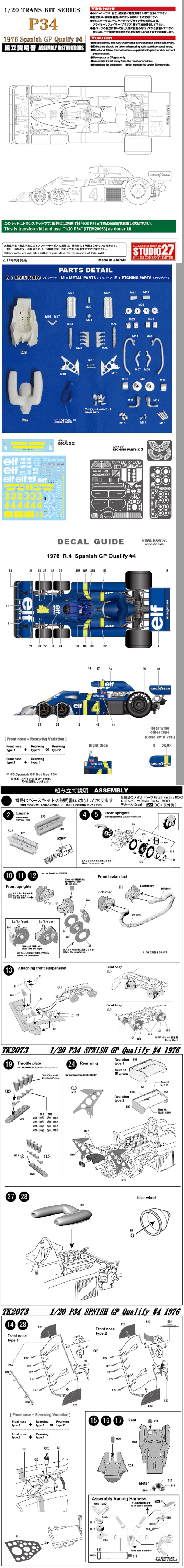 TK2073 1/20 P34 1976 Spanish GP Qualify#4 TRANS KITS (T社1/24対応)