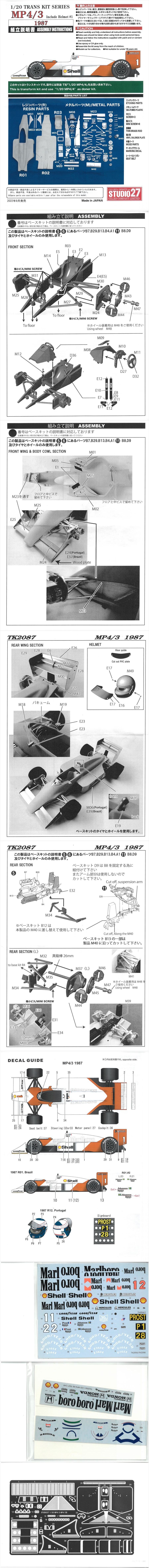 TK2087 MP4/3 1987 1/20 TRANS KITS (T社1/20 MP4/4対応)