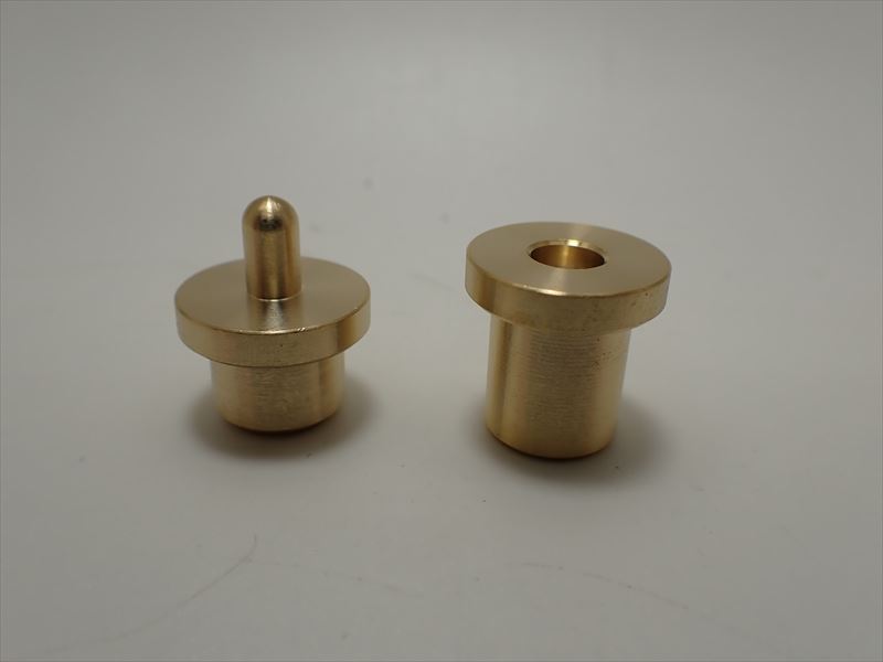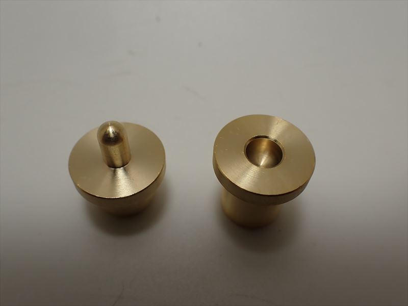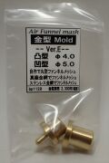 Funnel Mesh Mold フェンネルメッシュ金型 真鍮メッシュ(金網)やステンレスメッシュ(金網)を使い自作のファンネルメッシュが製作できる金型となります。 【ファンネルメッシュを作る前の本体の準備】 本体台座 上下2個セットに対して ビットサイズ(凹凸)のいずれかを選びます 本体に上下の穴にビットをセットし 上になるのが凸型となりますので 本体横のネジ穴より付属のイモネジを入れ六角レンチで凸型を固定します。 これでセット完了となり凹型の上に網(メッシュ)を置き 上部の凸型で網を押し込みます この金型を使い金網をファンネルの形を再現できます。 【ファンネルの作り方】 金型本体(2個)にオス型とメス型をセットします。 金網を2cm×2cmに切ります。 オス型(上)とメス型(下)の間にメッシュ(金網)を挟みオス型を手のひらを使いメス型に押し込みます。 グリッグリッと下まで押し込みオス型を取り メッシュを引っ張り出すと半円のファンネルメッシュができます。 半円はやや長めの形になりますので 半円(ファンネル)の大きさにブリキばさみ等を使いカットしてください。 ※ステンレスは真鍮より硬い素材となり目の粗いステンレスメッシュは押し込むことができませんのでご注意ください。 ※【1/43用の金型は強く押し込むとメッシュを貫通してしまい穴が開いてしまします 力加減に十分にご注意ください。】 :真鍮メッシュ適合サイズ 50/ms~120/ms :ステンレスメッシュ適合サイズ 70/ms~120/ms