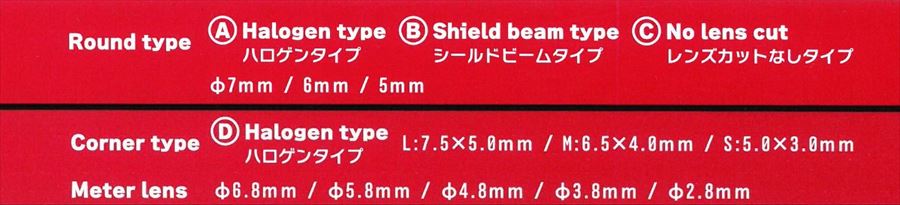 透明度の高いライトレンズ4種類サイズとメーターレンズ。