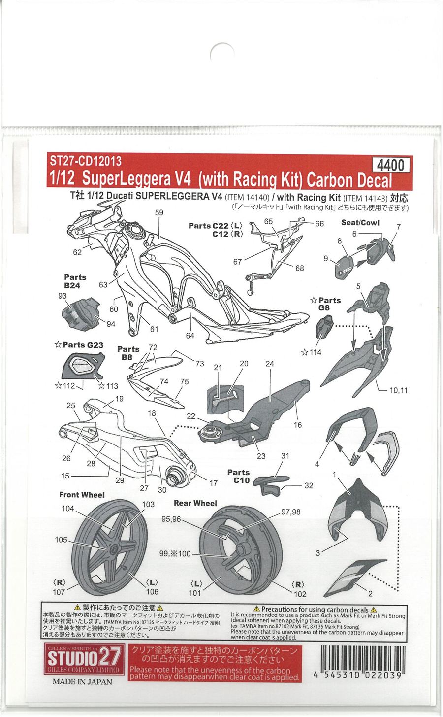 CD12013 1/12 Superleggera V4(with Racing Kit)carbon decal (T社1/12Ducati SUPERLEDDERA V4 ITEM14143応)