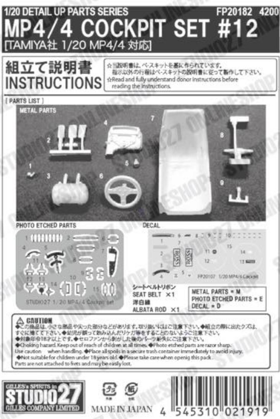 FP20182 1/20 MP4/4 Cockpit set #12 (T社1/20対応)