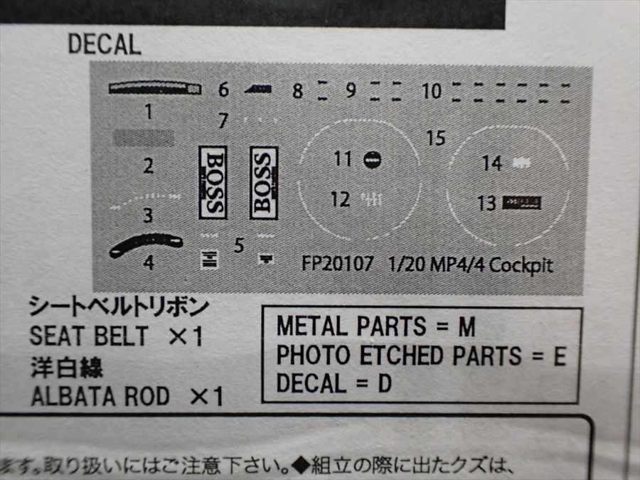 FP20183 1/20 MP4/4 Cockpit set#11 (T社1/20対応)