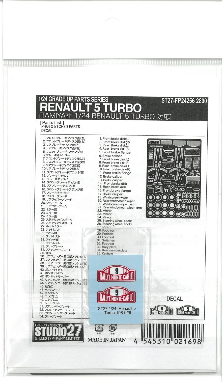 FP24256 1/24 RENAULT 5 TURBO GRADE UP PARTS (T社1/24対応)