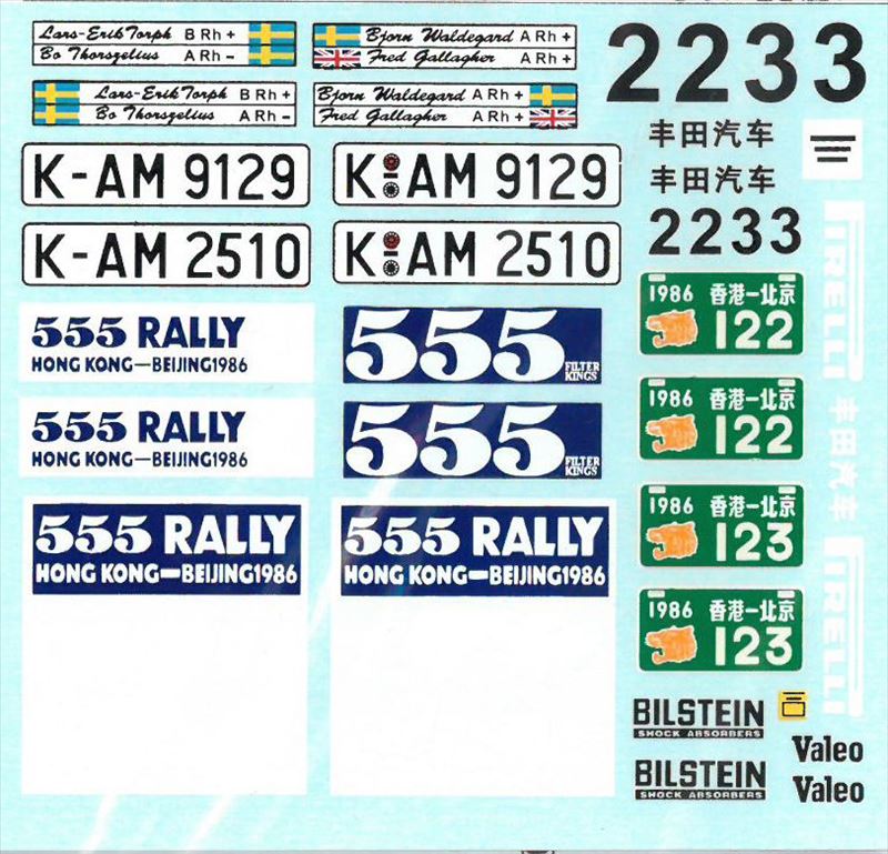 msmd221 1/24 Toyota Celica TA64 1986 Hong Kong - Beijing Rally conversion Decal(MSMcreation)
