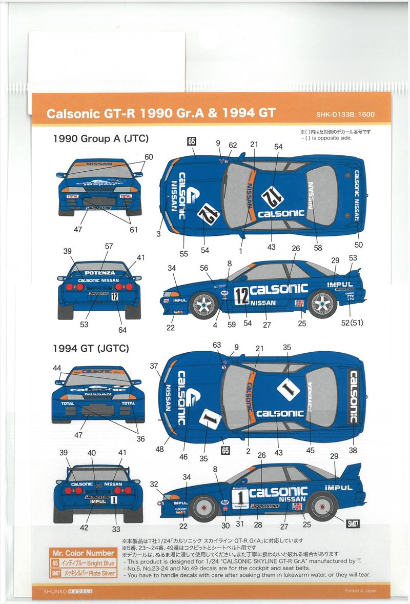 shk-d133b Calsonic GT-R 1990 Gr.A & 1994GT(T社1/24GT-R GrA対応)