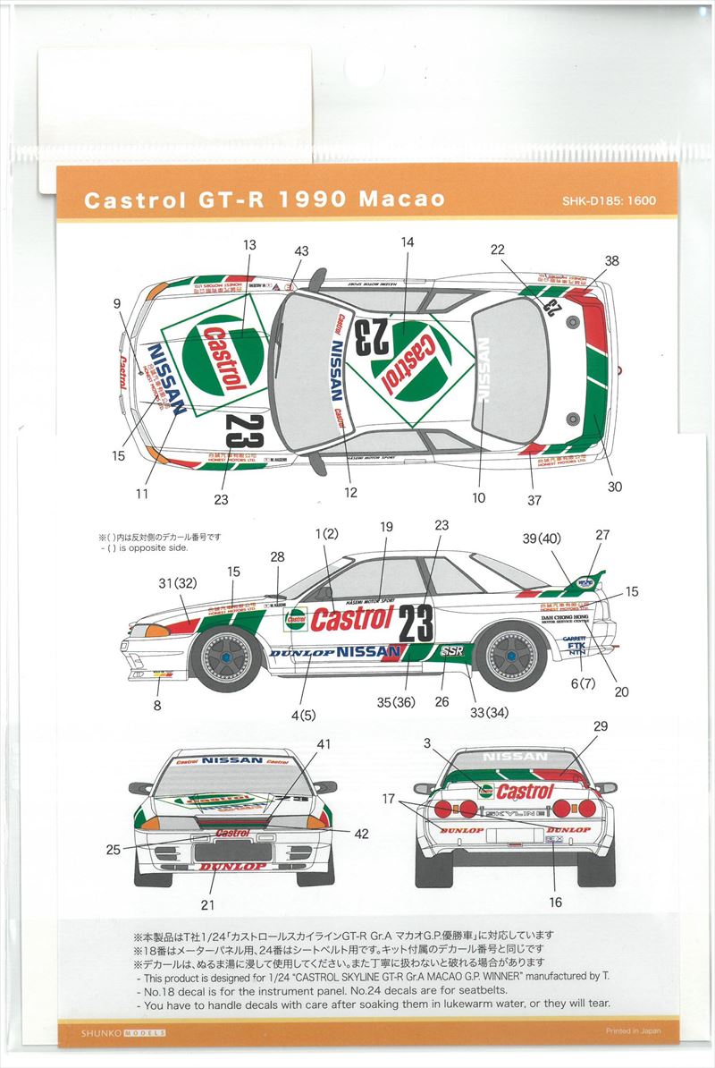 shk-d185 Castrol GT-R 1990Macao(T社1/24カストロールスカイラインGT-RGrAマカオGP優勝車対応)