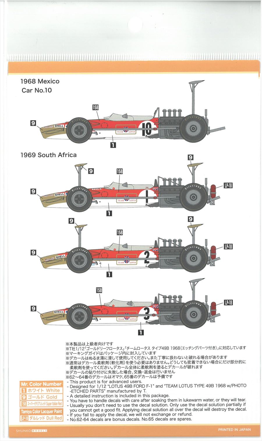shk-d498 1/12 Type49B 1968-69 (T社ゴールドリーフロータスタイプ49B対応)